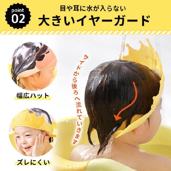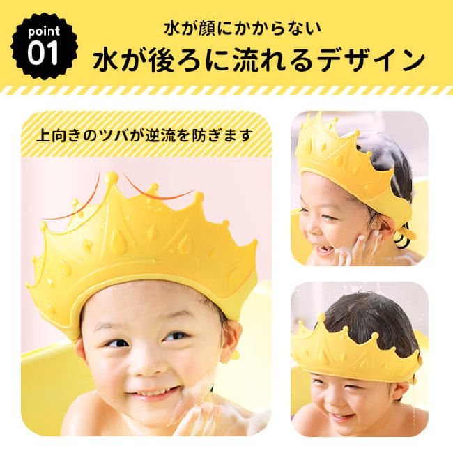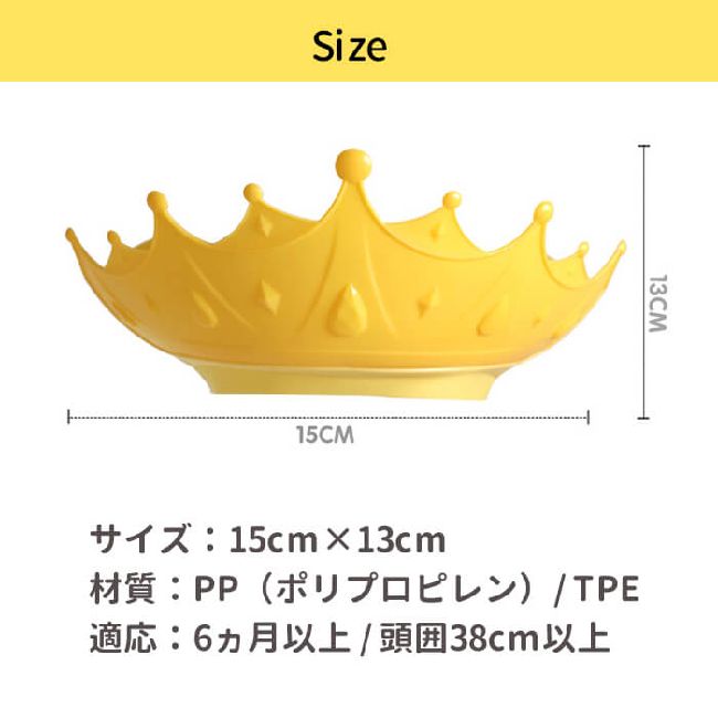 【イエロー】シャンプーハット シャワーキャップ 子供 赤ちゃん ベビー 防水 シャンプーグッズ | バスグッズ 子供用 かわいい 可愛い ティアラ プリンセス キュート バスタイム お風呂用