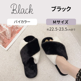 - [バイカラーブラック Mサイズ]もこもこルームシューズ