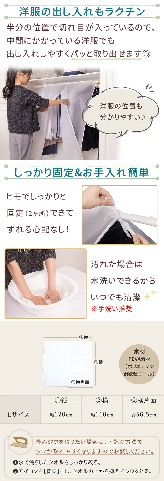 [ Lサイズ]ハンガーラックカバー | 大切な洋服をホコリや害虫からガード!