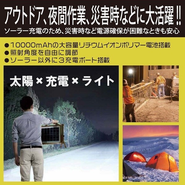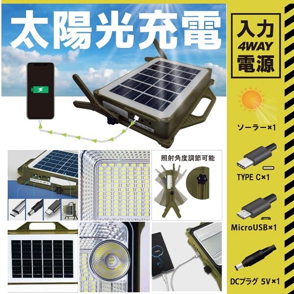 ソーラー充電のため、災害時など電源確保が困難なときも安心。