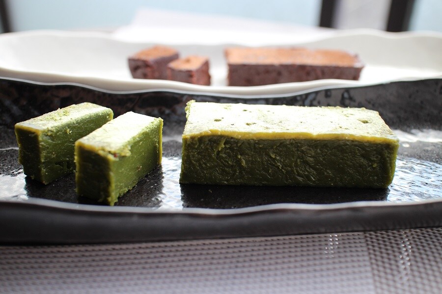 抹茶テリーヌは濃厚な京都産宇治抹茶とホワイトチョコレートでじっくり焼き上げました。濃厚な凝縮された抹茶を味わうことができ、赤ワインや洋酒、また日本茶にもよくあいます。冷凍でお届けしますのでまずはそのまま固めの食感をお楽しみください。