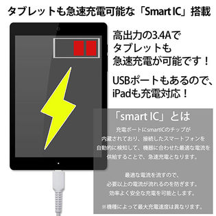 ・計3.4Aの高出力でタブレットの急速充電もできます。