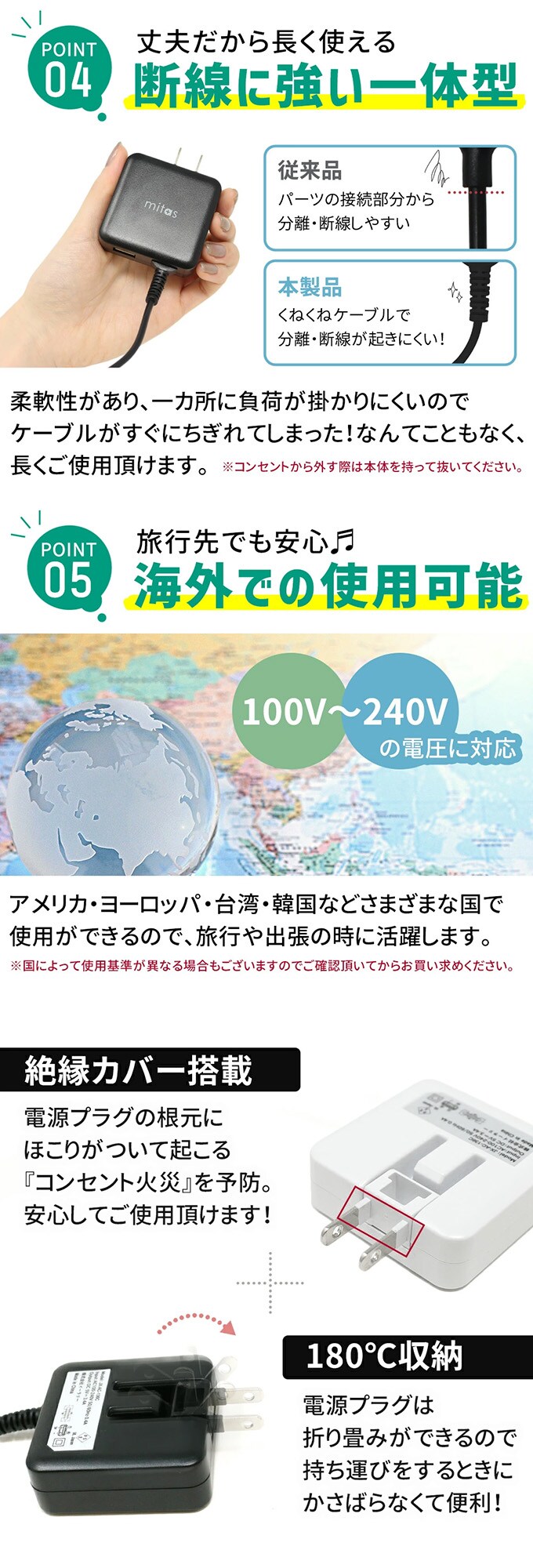 ■高出力3.4AのUSBポート付Type-Cケーブル一体ACアダプター