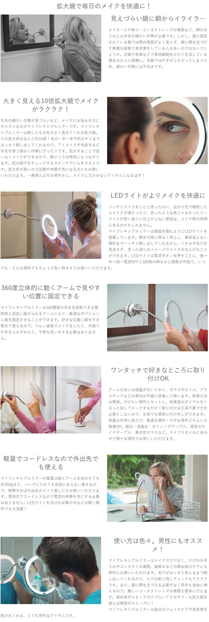 大きく見える鏡 マイフレキシブルミラー | メイクやヒゲのお手入れに便利な拡大率が約10倍の拡大鏡
