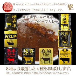- 【4食】 ブランド牛 カレー8種より厳選4種4食セット<松阪牛・近江牛・宮崎牛・神戸牛・他4種>