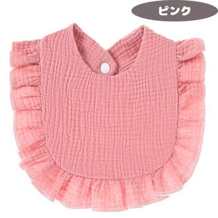 - 【ピンク】スタイ U型 U字 フリル スタイ 男の子 女の子 ガーゼ よだれかけ