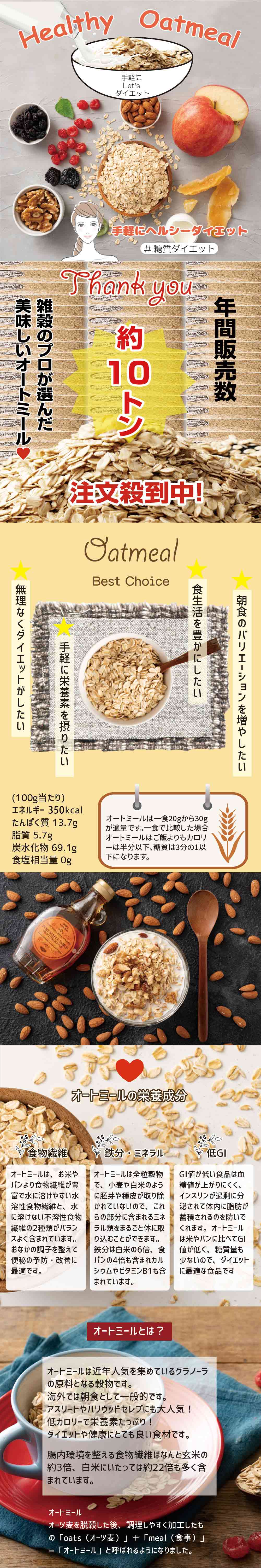 【1kg(500g×2)】オートミール (オーツ麦・チャック付き)【メール便2個口配送】 | シリアル・グラノーラにプラスでダイエット 低カロリーで高栄養 大粒で高品質なロールドオーツ