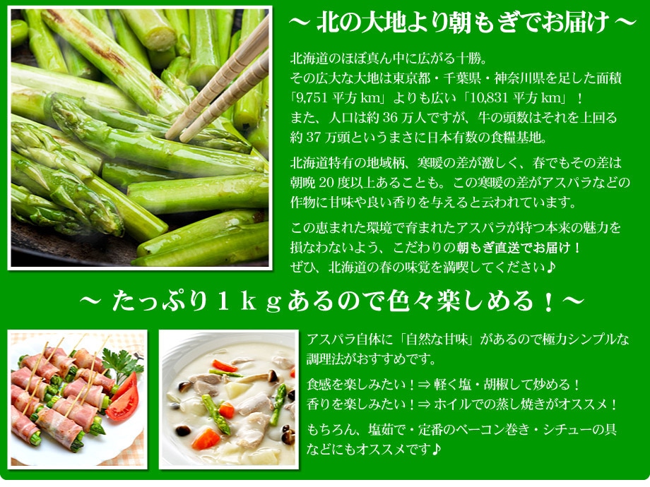 【約1kg(L〜2Lサイズ)】北海道十勝産 グリーンアスパラガス | 北海道十勝産を朝もぎ直送!