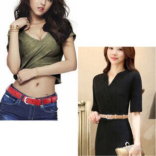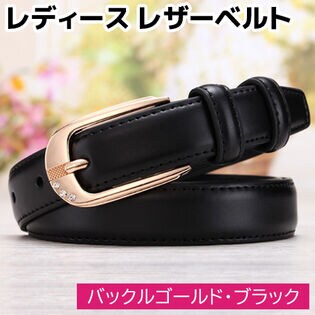 - 【ゴールドバックル×ブラック】ベルト レディース 大きいサイズ 細ベルト レザー