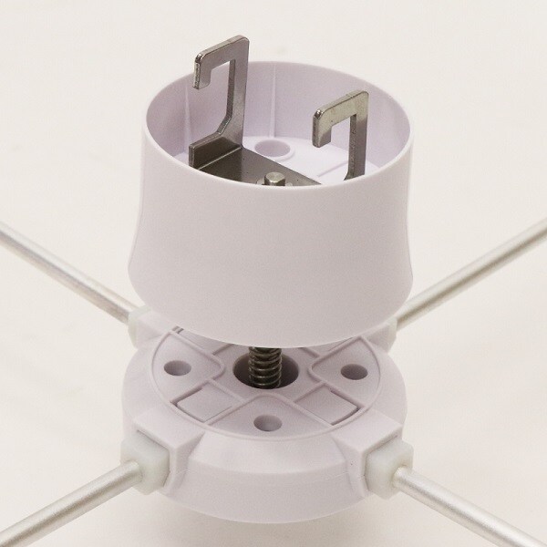 特別な機器などは必要ありません。ドライバーなどの簡単な工具で本体を組み立てて、4方向天井の中央に引っ掛けるだけです。