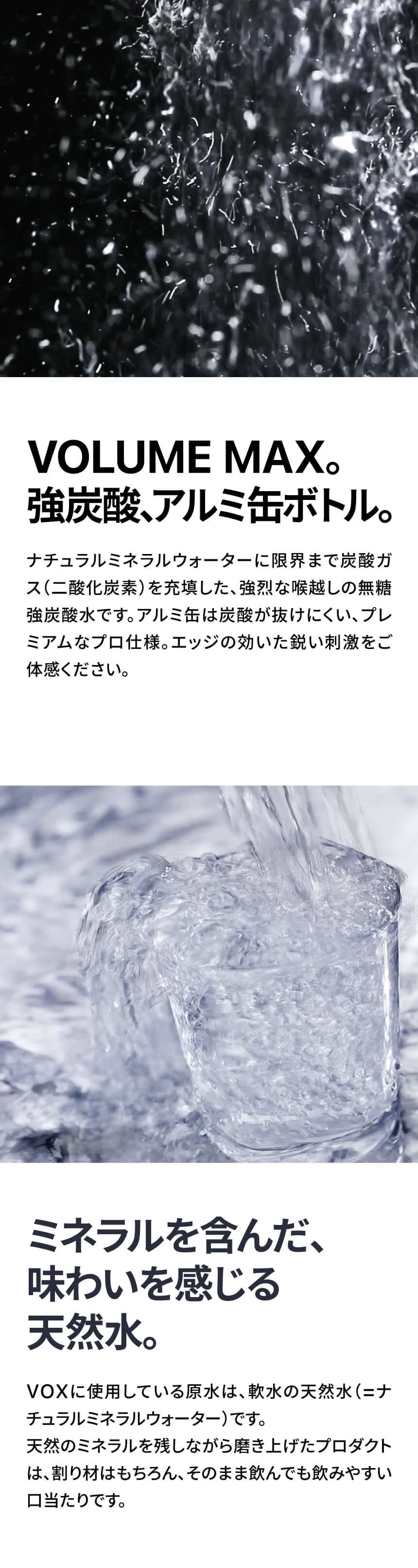 【VOXは全て、天然水を使用。 水の味わいを感じる炭酸水です。】