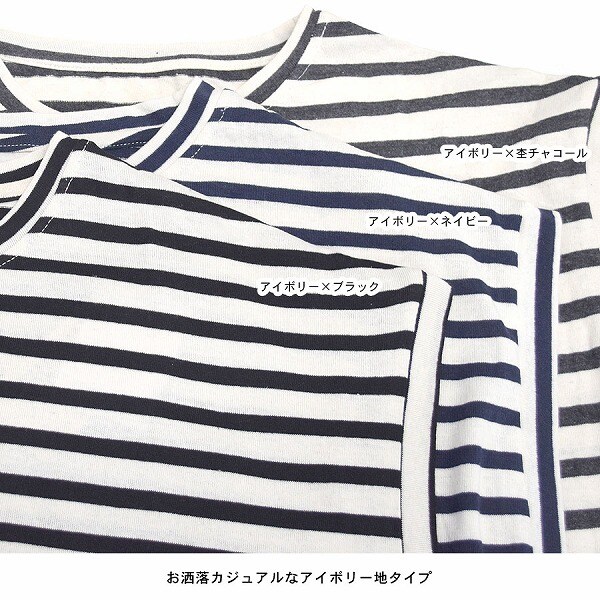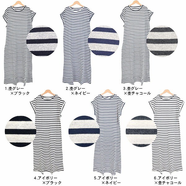 - 袖ターンバックフレンチスチーブボーダー柄ロングワンピース