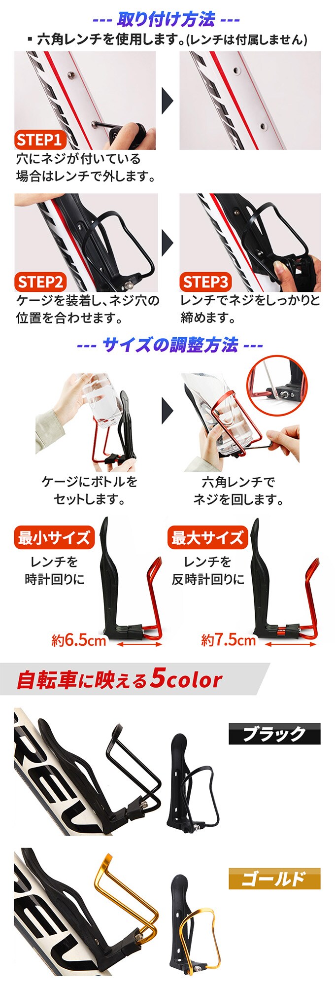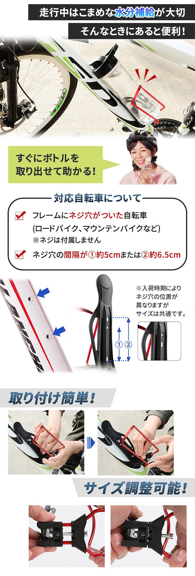 【レッド】自転車ドリンクホルダー | 取付けカンタン!安定性ありで使いやすい
