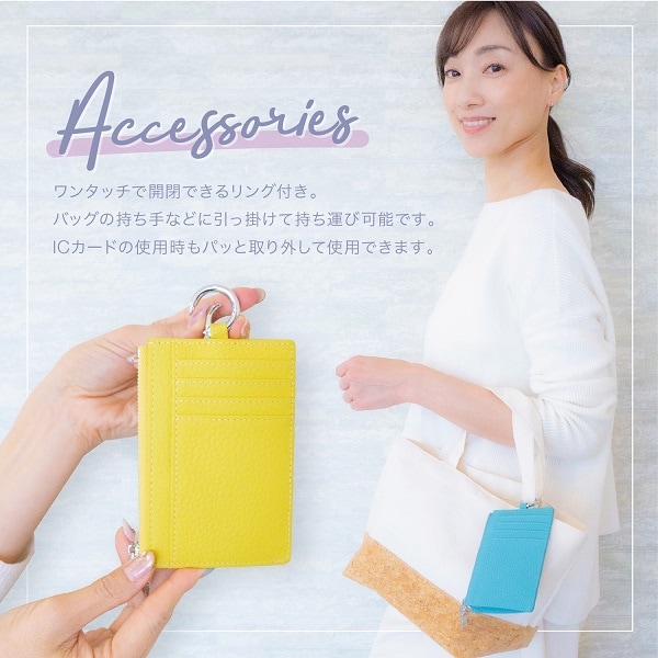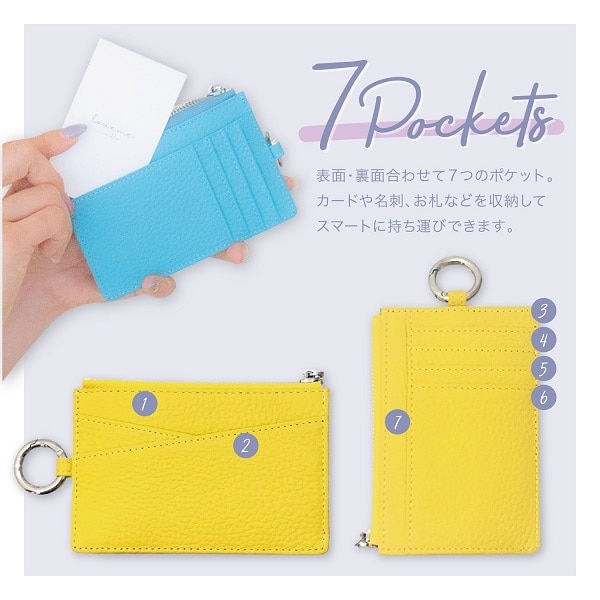 [レモンイエロー] ミニウォレット | お札や小銭をチャックで収納!7つのカード用ポケット付き!便利なリングで引っかけ簡単です。
