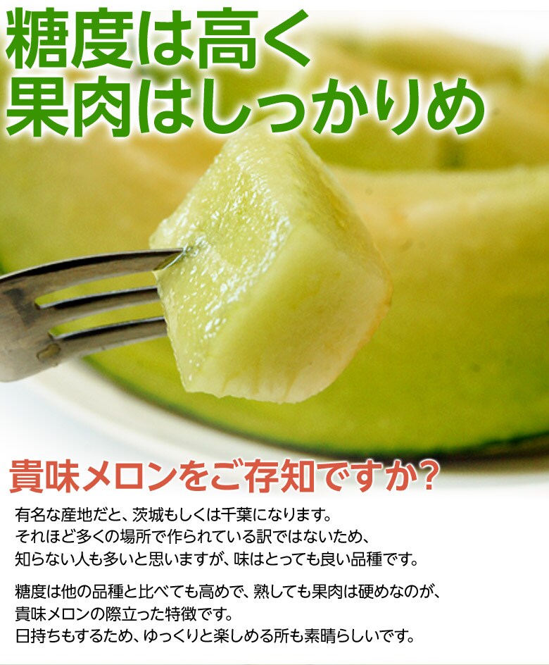 - 【計約3.2kg 4L〜5Lサイズ×2玉】『貴味メロン(青肉)』千葉県飯岡産