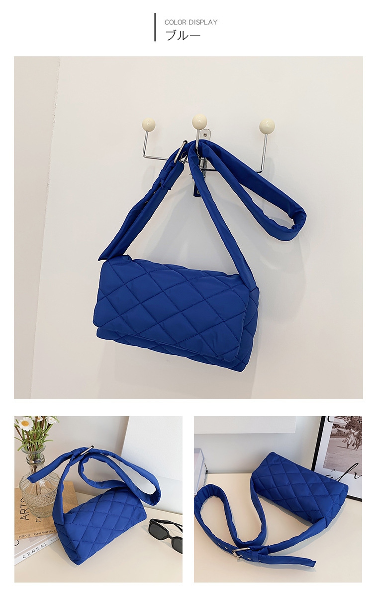 - 【ブルー】大人可愛いキルティングナイロンショルダーバッグ