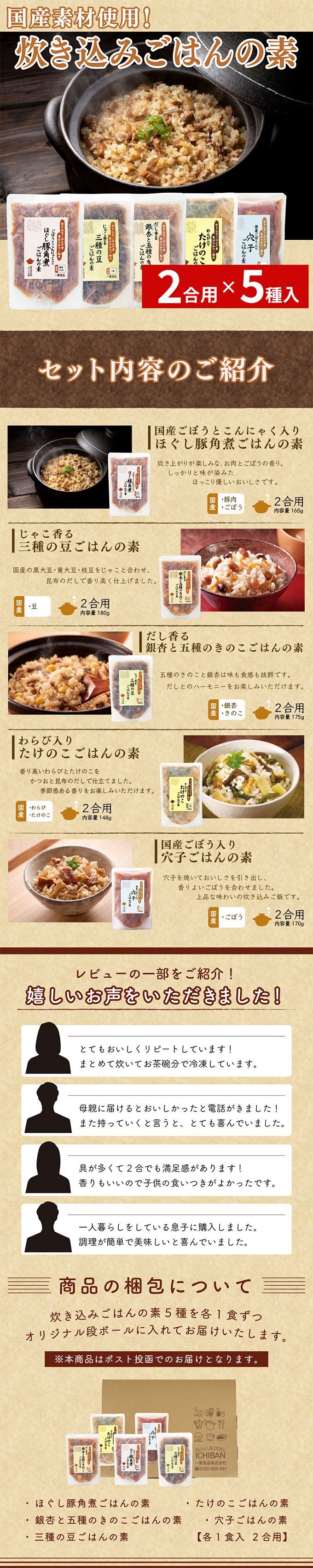 - 【2合用×5袋】ちょっと贅沢な国産素材使用の「炊き込みごはんの素」5種類