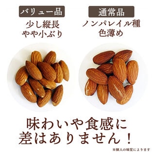 製法は同じで味や食感に違いは感じません(味は主観によります)。見た目や粒の大きさにはこだわりのないお客様、毎日食べるからコスパの優れたアーモンドがいい!というお客様にはおすすめの経済的なアーモンドとなっています。ぜひ一度お試しください。