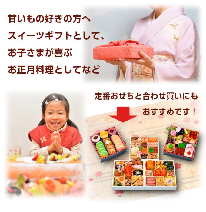 【12/30午前着】おせち「千代八千代」(スイーツおせち/23品/約3~4人前/スイーツ三段重) | 食材すべてがスイーツ!まるで宝石箱のようなスイーツおせち