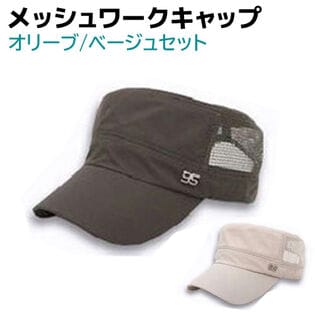 - 【オリーブ・ベージュ】ワークキャップ メッシュ 2個セット メンズ レディース 帽子