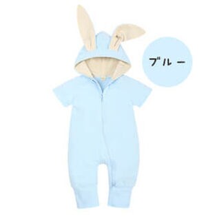 - 【ブルー・66】ロンパース うさぎ ベビー 赤ちゃん 半袖 オーバーオール ウサギ