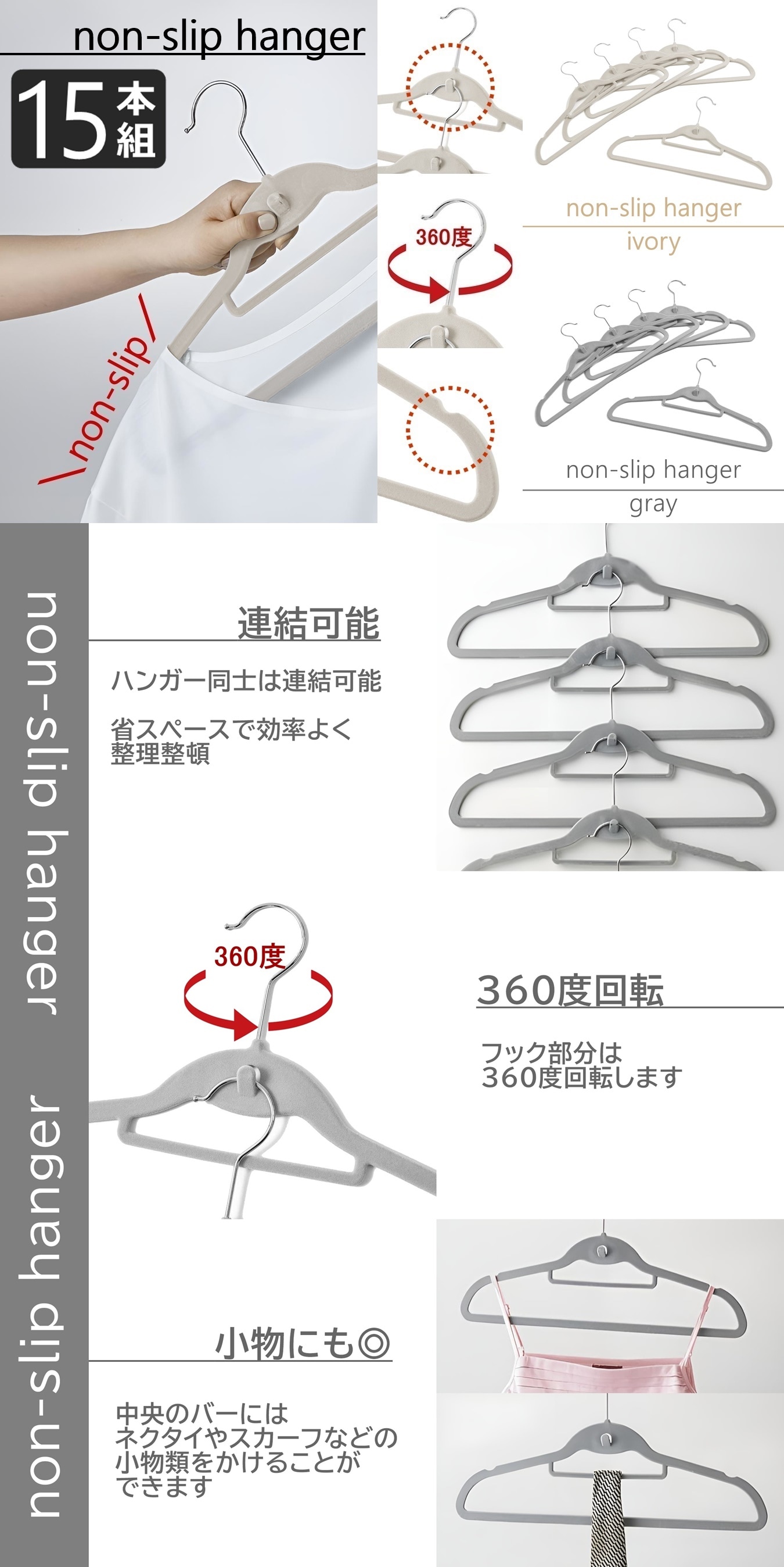 【アイボリー15本】ノンスリップハンガー | 連結可能で省スペース