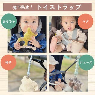 おしゃぶりやおもちゃ、マグ、哺乳瓶などの落下防止に使えます。 赤ちゃんがおもちゃを投げてしまう、まだ物を上手く持てなくて落としてしまう…というお悩みを持つママにおすすめです。