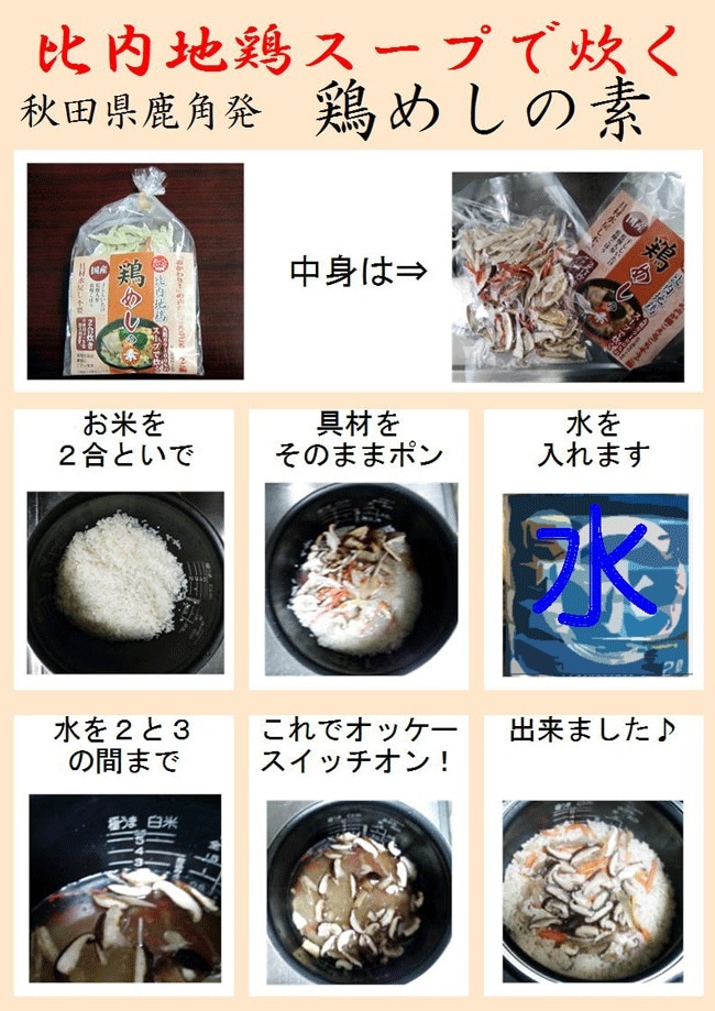 - 【2合炊き】比内地鶏スープで炊く鶏めしの素!秋田県鹿角市 鶏飯 かしわめし