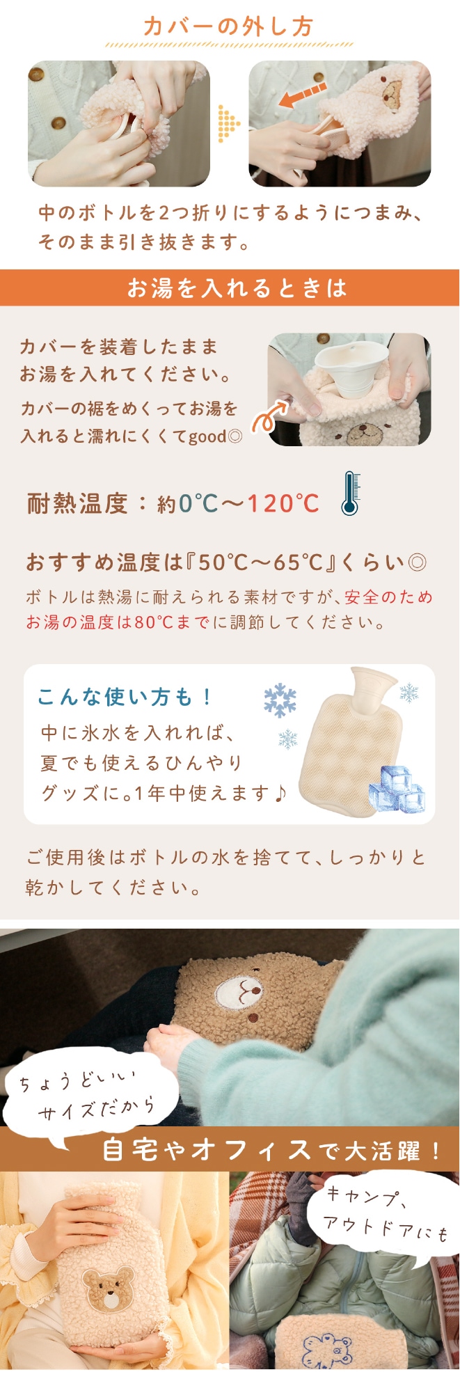 [Bタイプ]もこもこカバー付き あったか湯たんぽ | 冬に大活躍の湯たんぽ!洗えて便利なかわいいカバー付き
