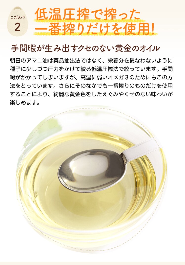 ●本品は熱に弱く酸化しやすい特性を持っています。加熱などでの使用は避けてください。