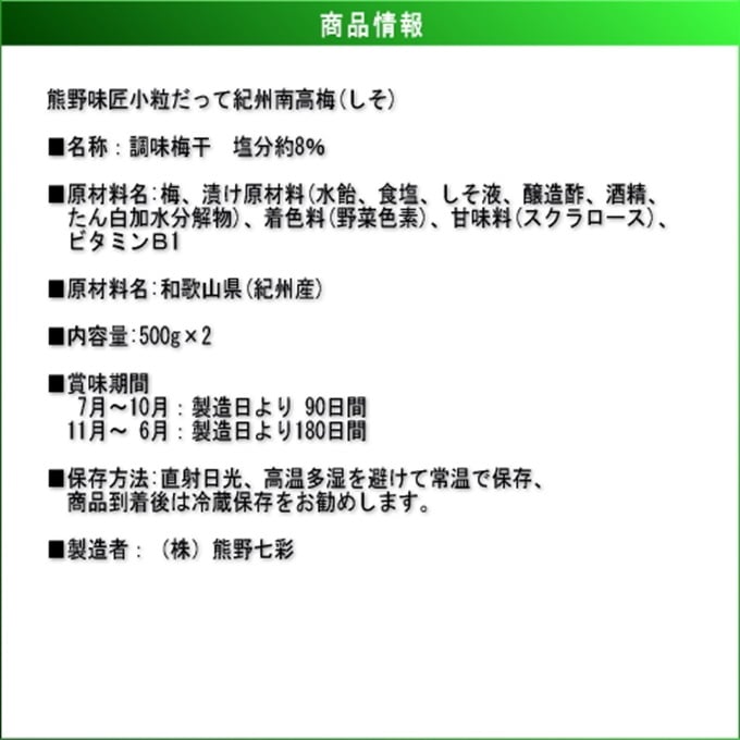・原産国(最終加工地):日本(和歌山県田辺市)