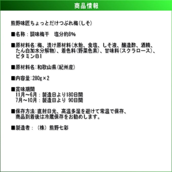 ・原産国(最終加工地):日本(和歌山県田辺市)