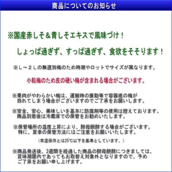 ・お召し上がり方:毎日の食卓に、チャーハンやパスタに、焼き魚やうどんに、焼酎梅としても美味しくいただけます。