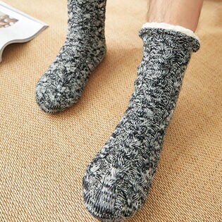 - 【グレーブラック】メンズ 裏ボア ルームソックス もこもこ 滑り止め 冬 暖かい ルームソックス