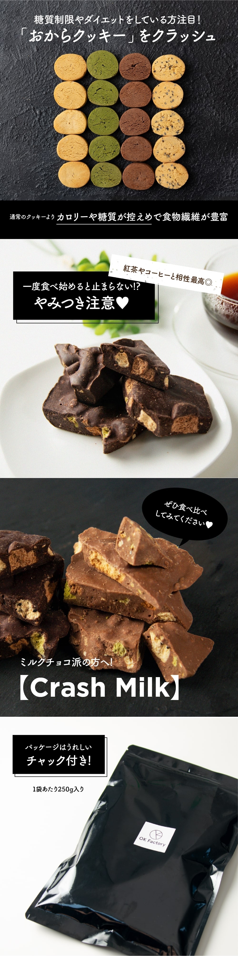 【250g(250g×1袋)】4種のおからクッキークラッシュブラック(チャック付き) | ヘルシーな割れおからクッキーを濃厚なチョコで包みました♪ザックザクの食感が美味しさの秘訣!