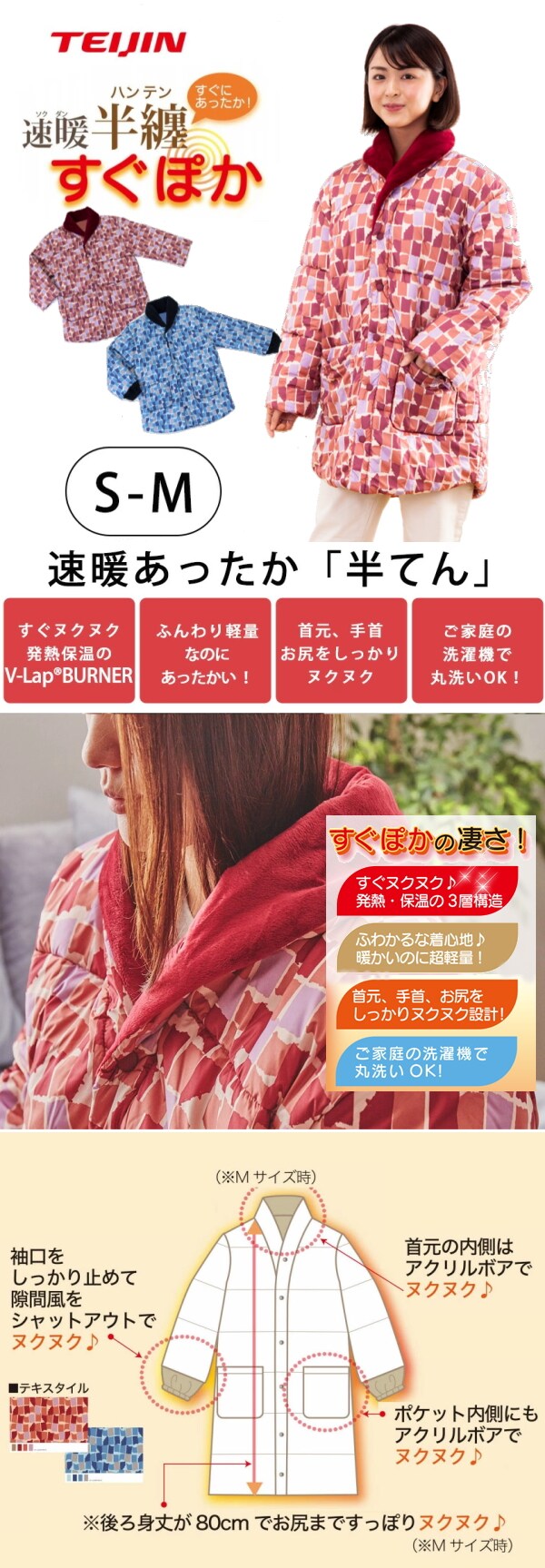 テイジンのV-Lap BURNERを使用した「速暖半纏すぐぽか」。