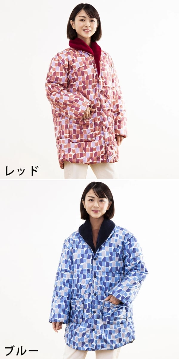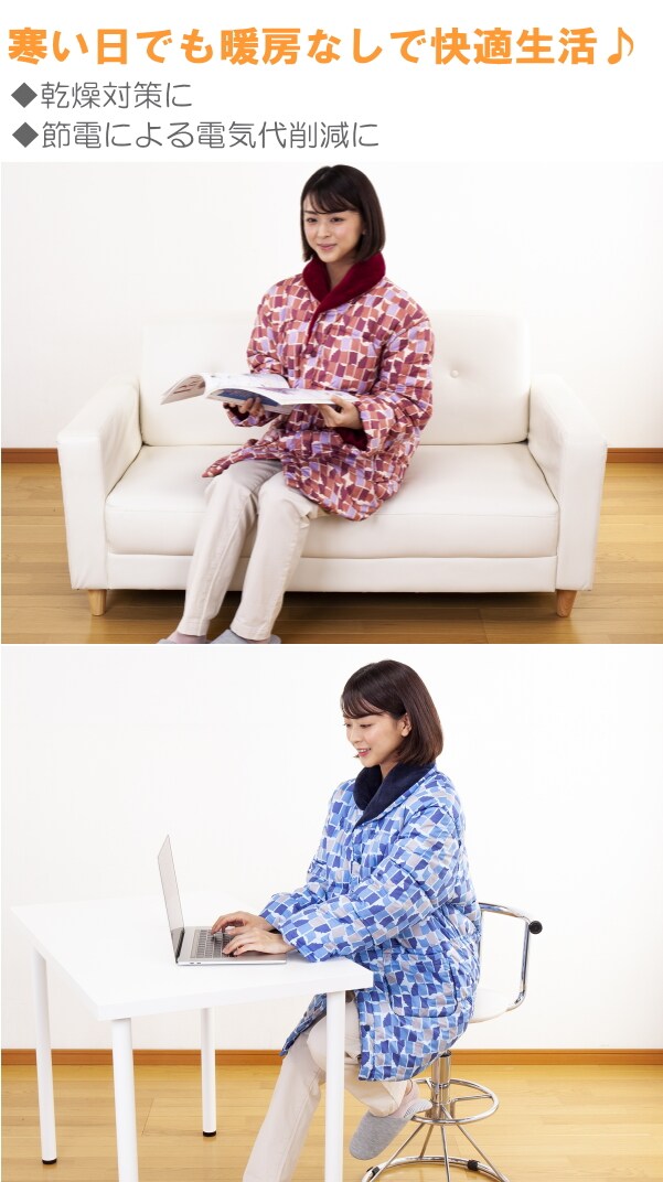 また、日中、電気代の節電でエアコンを控える際や、乾燥対策でエアコンを使いたくないって方も、この半てんが1枚あれば室内で快適にお過ごし頂けます。