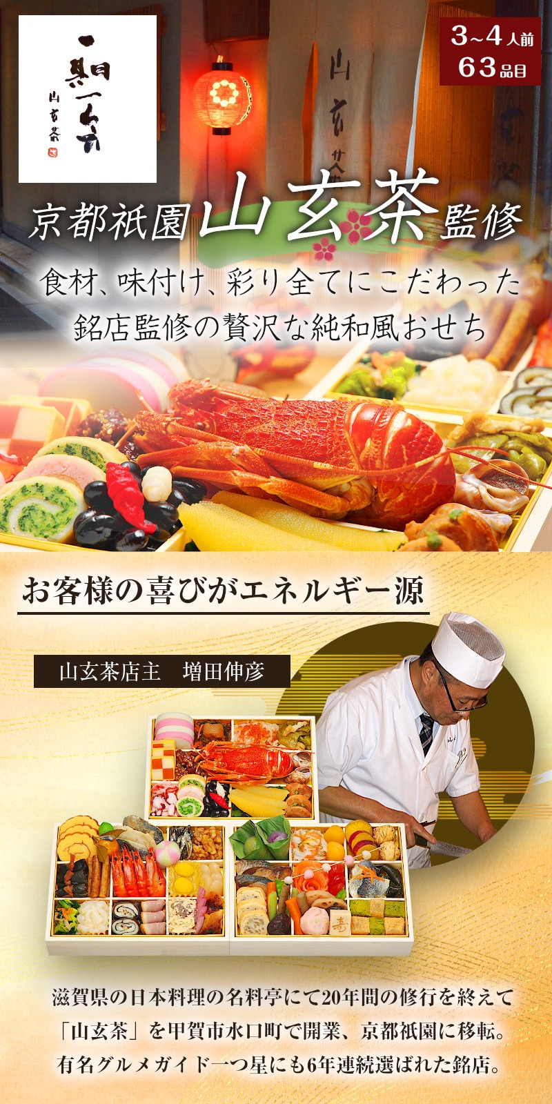 - 【12/29着】おせち 山玄茶「招」(祇園料亭/63品/約3~4人前/和風三段重/盛り付け不要)