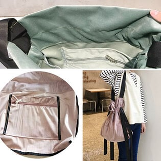 秋冬のコーディネートにぴったりのリボン巾着ベロアトート
