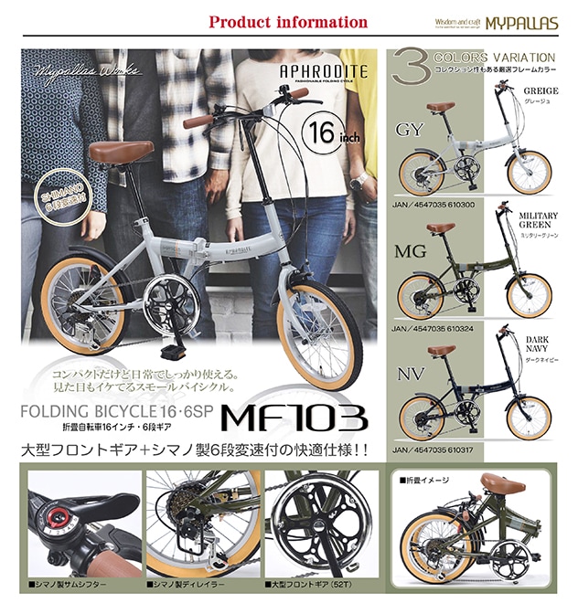 - 【ダークネイビー】折畳自転車16インチ・6段ギア