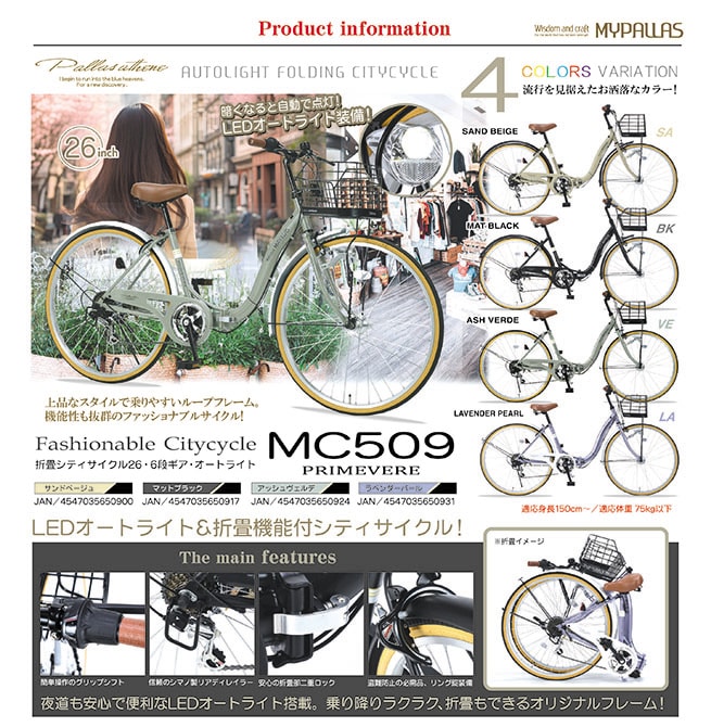 備考/折畳部二重ロック・LEDオートライト・ハーフカバーチェーンケース・オリジナルバスケット・リング錠