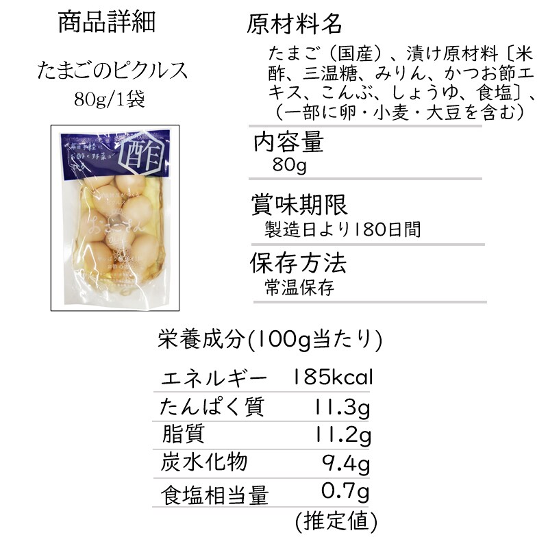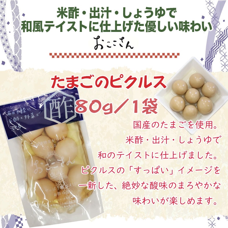 【3袋/240g (80g×3袋)】ベジタブルピクルス たまご 国産 | 米酢と醤油、出汁がベースのマイルドでやさしい酸味の和風ベジタブルピクルス。