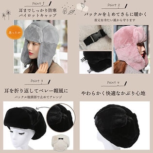 【ホワイト】レディースパイロットキャップ | 耳まで暖かい 防寒 フライトキャップ