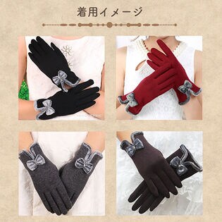 【ブラウン】レディース スマホ タッチパネル 対応手袋 | スマホ対応秋冬レディース手袋 リボン付き