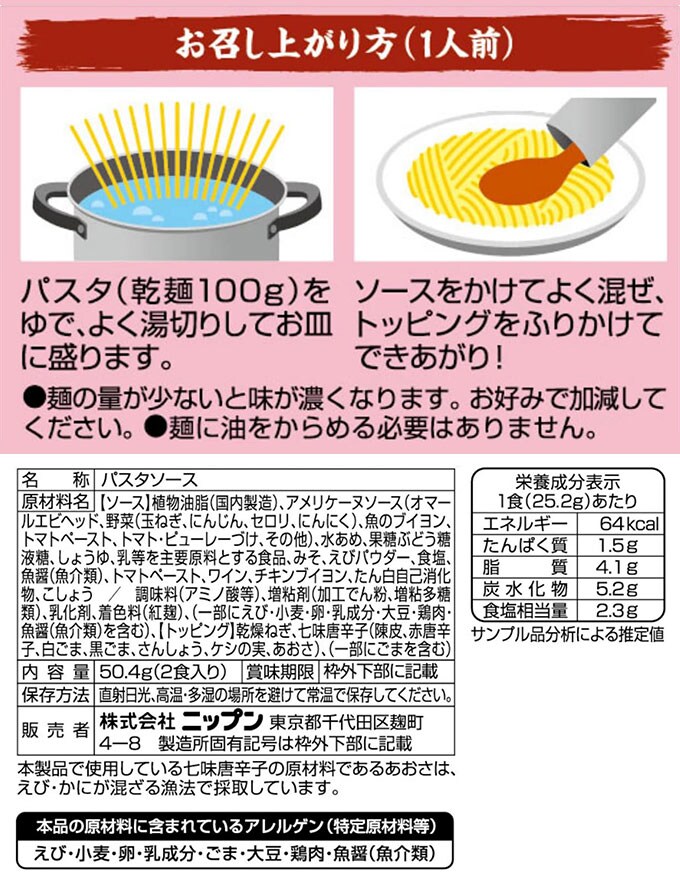賞味期限2024/2/29【48袋(96人前)】オーマイ 和パスタ好きのための海老 | ゆでたパスタにまぜるだけ!醤油と味噌で仕立てた、海老と和パスタ好きにぴったりのソース