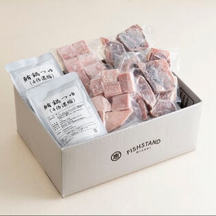 煮込むと美味しいまぐろの部位と醤油で仕立てたこだわりの鍋つゆのセット。