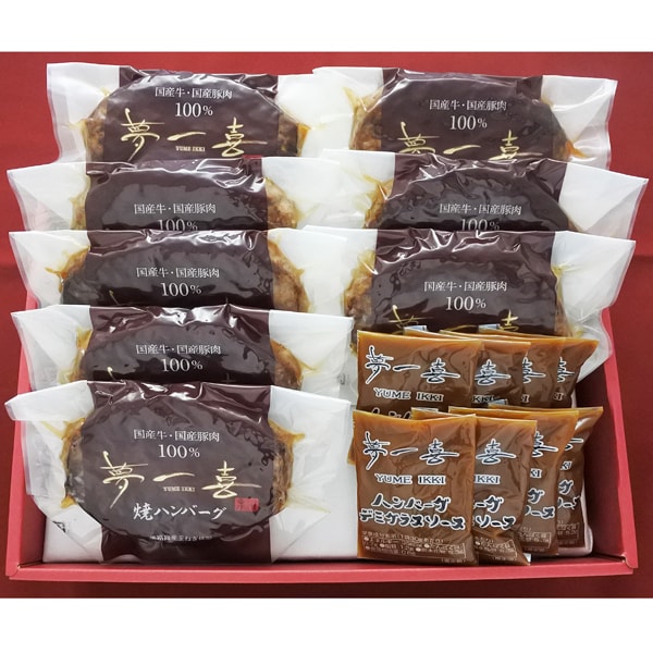 - 【計8個+ソース8個付き】「夢一喜」 国産牛・豚肉使用 焼ハンバーグ
