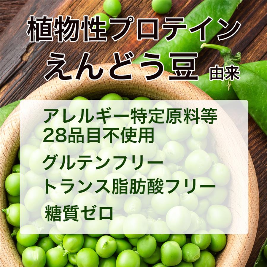 えんどう豆たんぱく(フランス製造)、難消化性デキストリン、ジンジャーエキスパウダー/香料、甘味料(アスパルテーム・L-フェニルアラニン化合物、ステビア、スクラロース)、香辛料抽出物