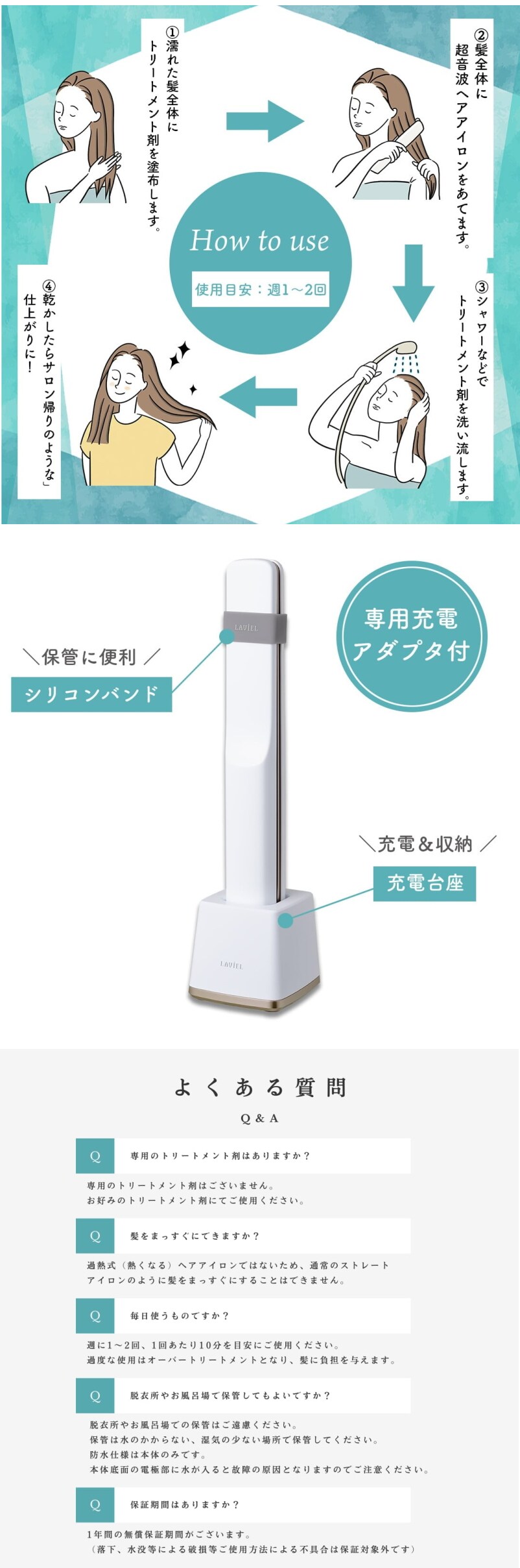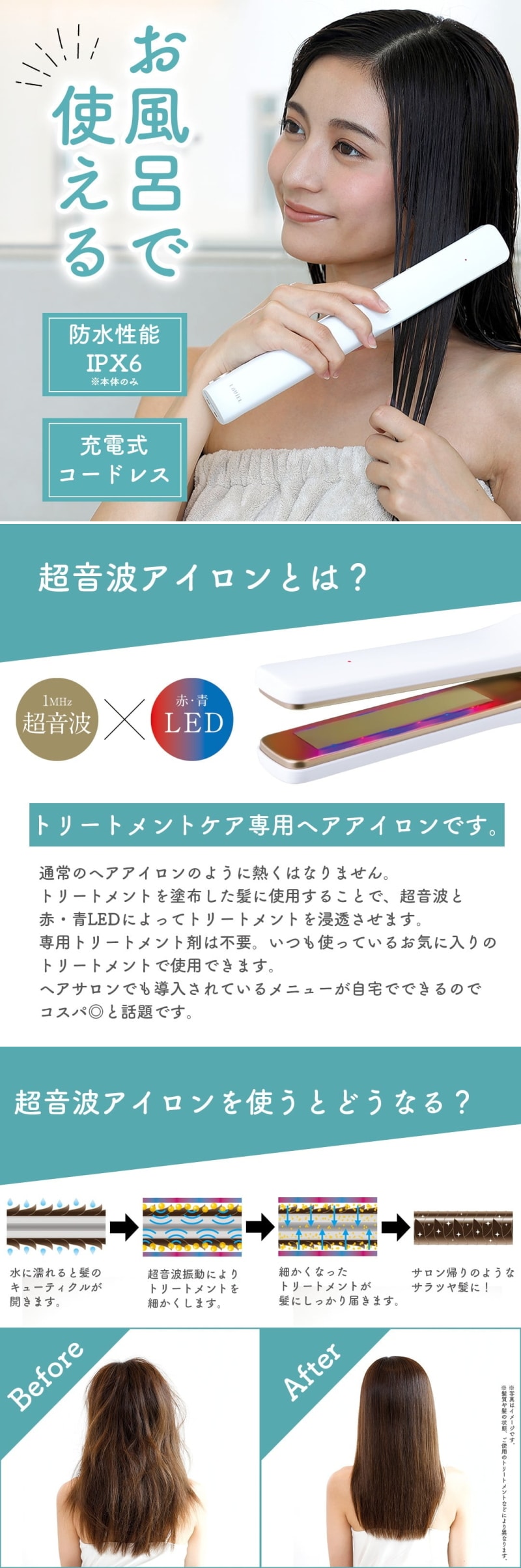 ヘアサロン級の超音波トリートメントをご自宅で簡単に行うことができます。