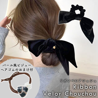 - [ブラック] ベロアリボンシュシュ ヘアゴムのおまけ付き